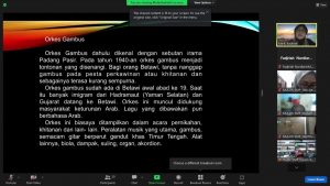 Adapun materi yang diberikan dalam pelatihan ini termasuk sejarah Kota Jakarta dan asal-usul orang Betawi, seni tari dan seni musik, kuliner, arsitektur dan kriya, bahasa dan sastra, serta ritus dan busana.